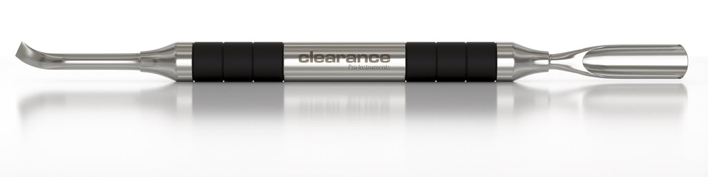 Perfectly sharpened cleansing tool-knife for the cuticle on one side and a thin, blunt pusher on the other.