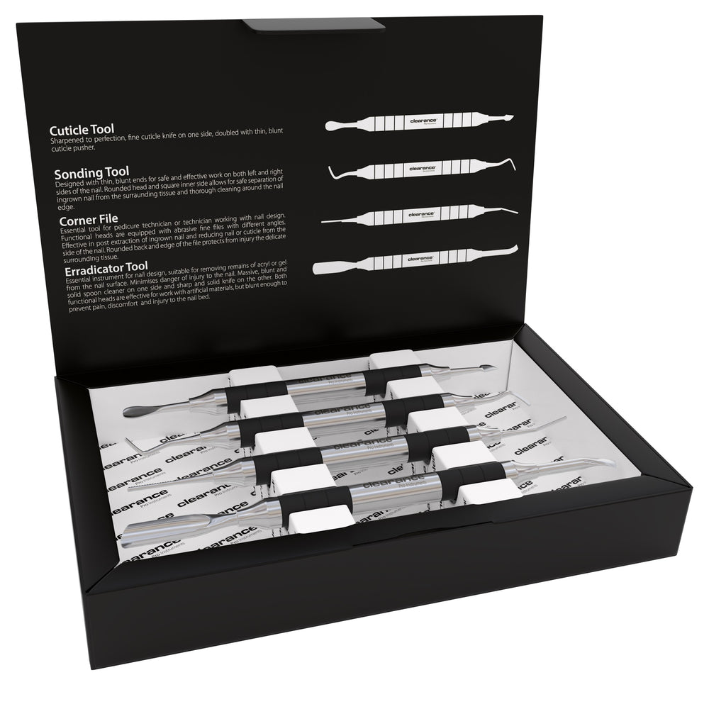 A multifunctional set of 4 specially selected instruments with two functional heads provides the master with all the necessary tools for a perfect manicure and pedicure.