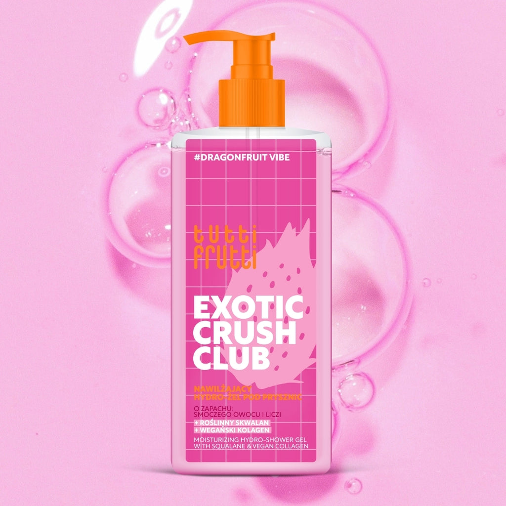 A hydrating hydro shower gel from the EXOTIC CRUSH CLUB line that gently cleanses, moisturises, and helps refresh the skin during washing. The formula enriched with vegan collagen supports skin elasticity and smoothness, while plant-derived squalane softens and helps maintain optimal hydration levels.