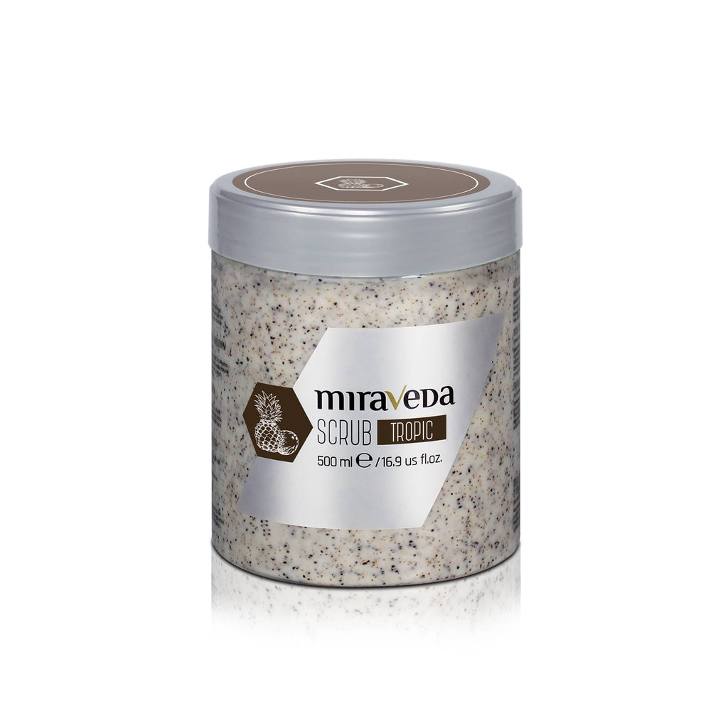 Miraveda Tropic Scrub содержит натуральные эксфолианты, которые эффективно удаляют мертвые клетки кожи. Эти ингредиенты, такие как мелко молотые абрикосовые косточки и морская соль, обеспечивают мягкую, но тщательную эксфолиацию, раскрывая более гладкую и сияющую кожу. -