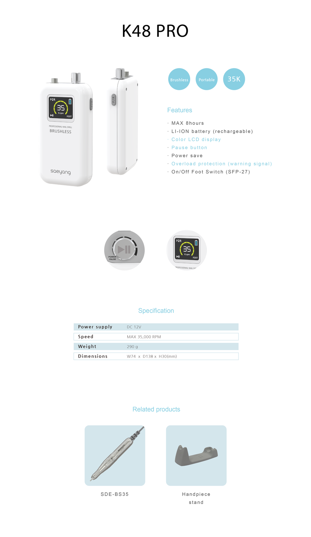 MARATHON K48 PRO White + BS35 brushless (35,000 rpm) (12v)