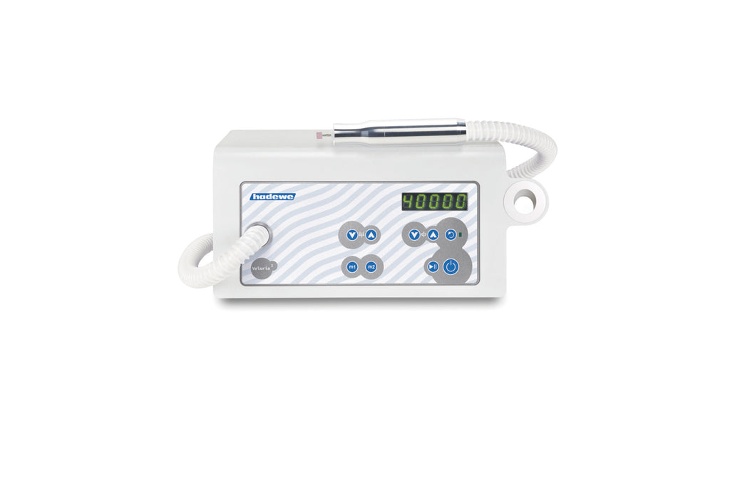 The Veloria² Chrome is the latest model in the Hadewe pedicure equipment line, offering high performance, low noise levels, and ease of use. This device is equipped with a modern brushless motor that not only ensures quieter operation but also reduces the weight of the unit and the need for maintenance.