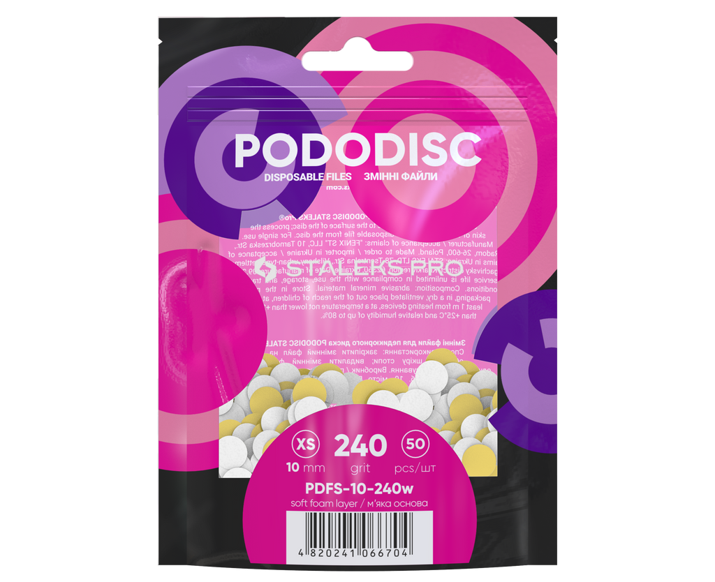 STALEKS Interchangeable files on soft base for pedicure disc XS 240 grit, white (50 pcs.)[PDFS-10-240W]