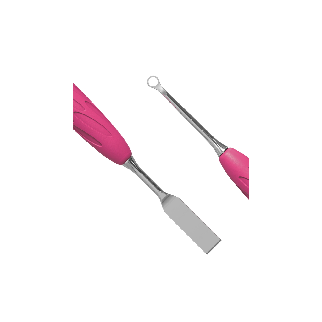 The hypoallergenic silicone handle and metal working part make this pusher the perfect combination of comfort and functionality.