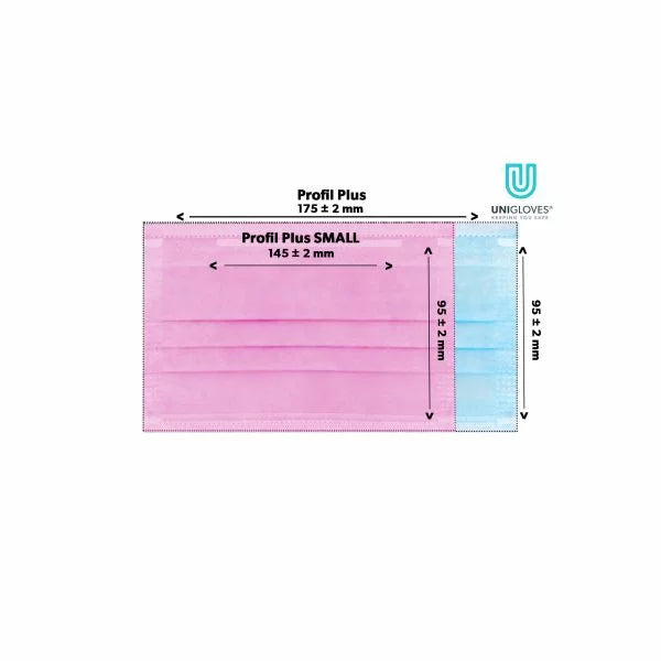 Like its larger relative Profil Plus, the Unigloves Profil Plus Small face mask has the same properties and can therefore be used in medicine, industry, or private settings. The face mask has been tested according to the EN 14683 (Type II R) standard and, thanks to the 3-fold glass fibre-free filter medium, it offers a bacteria filtering capacity of up to 98%. Protection for both the user and the environment is thus guaranteed.