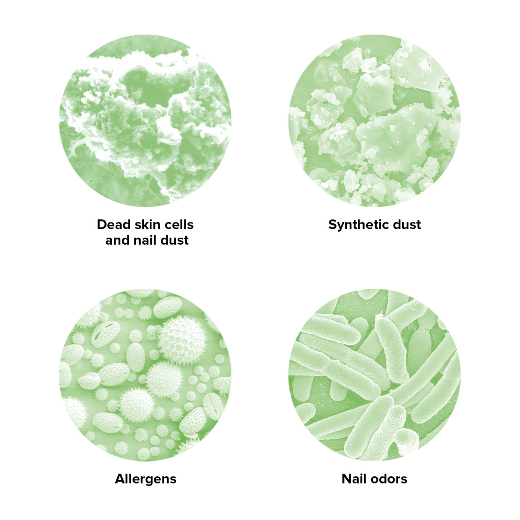 Nurodytas filtro tarnavimo laikas yra apytikris ir priklauso nuo darbo krūvio bei nuo to, kaip nagų meistrai naudoja įrenginį.