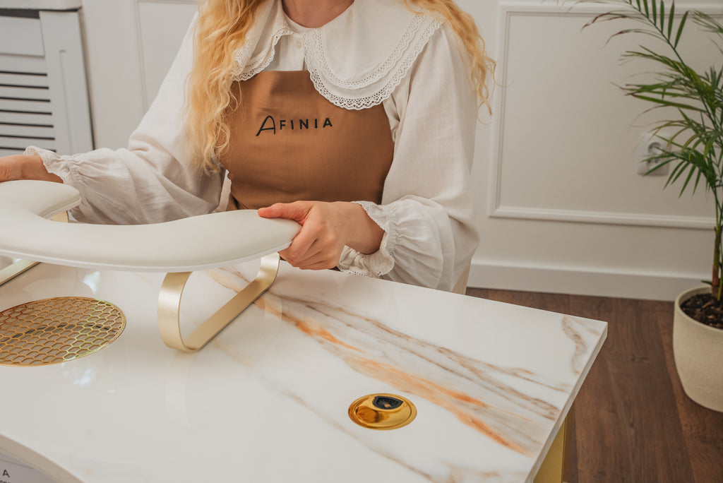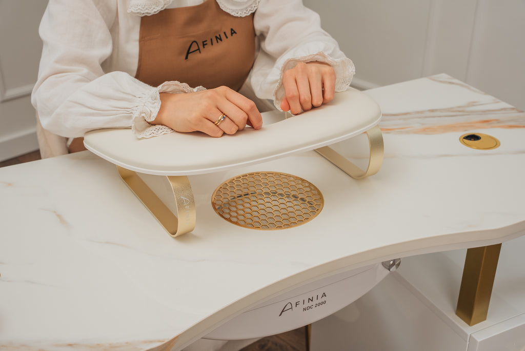 Stilingas ir patogios rankų atramos, sukurtos atsižvelgiant tiek į meistro, tiek į kliento patogumą. Jos ergonomiška konstrukcija užtikrina tvirtą ir patogią rankų atramą, palengvinančią ir tiksliau atliekamą manikiūro bei nagų formavimo procesą. Pagaminta iš atsparių medžiagų, kurios yra atsparios acetonui, aukštai temperatūrai ir nešvarumams, užtikrinant ilgaamžiškumą ir paprastą priežiūrą.