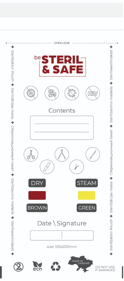 Universalūs kraftpopieriaus sterilizacijos maišeliai su indikatoriumi – tinkami karšto oro ir autoklavo (garų) sterilizacijai
