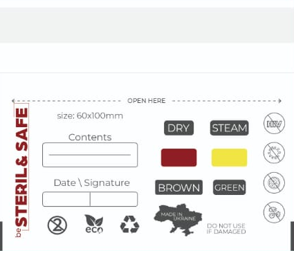Universalūs kraftpopieriaus sterilizacijos maišeliai su indikatoriumi – tinkami karšto oro ir autoklavo (garų) sterilizacijai