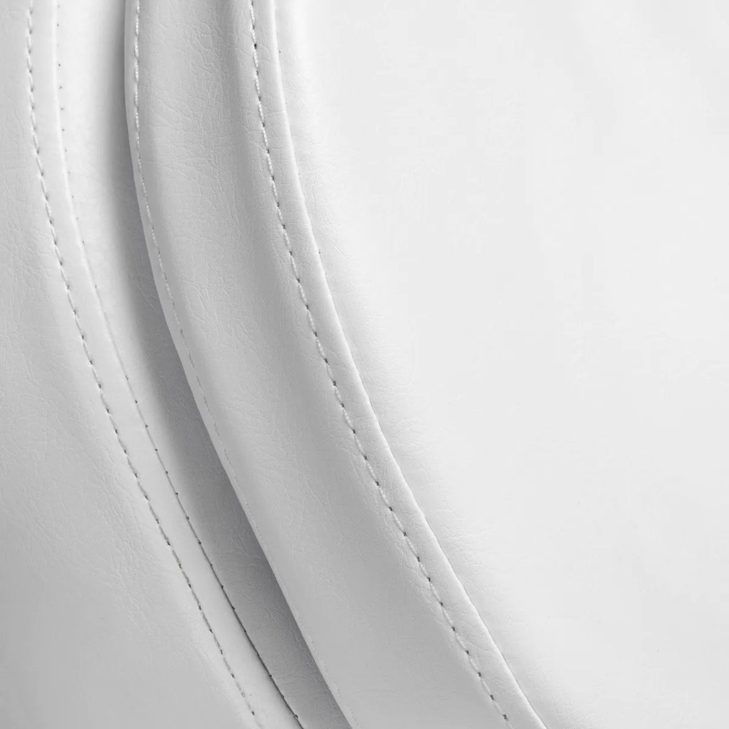 Kėdė yra užpildyta profiliuota putų medžiaga ir padengta malonia, matinė sintetine oda baltų atspalvių.