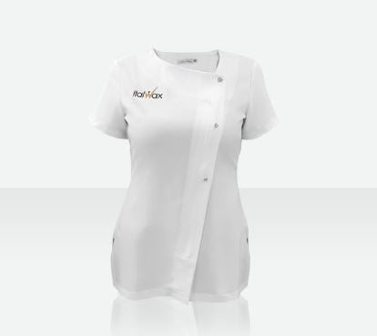 Individualizuota tunika su asimetrišku kaklo iškirpimu, paslėptu priekiu užtrauktuku ir dirbtinių kristalų sagų detalėmis. Pagaminta iš mūsų minkšto twill poliesterio.