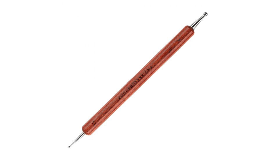 Dots nagų formavimui (3 mm ir 1,5 mm) KODI PROFESSIONAL yra patogus, kokybiškas įrankis, skirtas monogramų, linijų profesionaliam piešimui. Šoninė dalis su mažesniu skersmeniu (1,5 mm) gali būti naudojama mažesniems ir smulkesniems piešinio elementams kurti, o pusė su didesniu darbo paviršiaus skersmeniu (3 mm) dažniau naudojama dideliems apskritimams ir tūrinėms monogramoms su ryškia rašto faktūra piešti. Tam ant taško galo surenkamas gelinio lako lašas ir pernešamas ant nago paviršiaus, kad būtų sukuriami raštai, imituojantys modeliavimą ant iš anksto paruošto pagrindo sluoksnio.