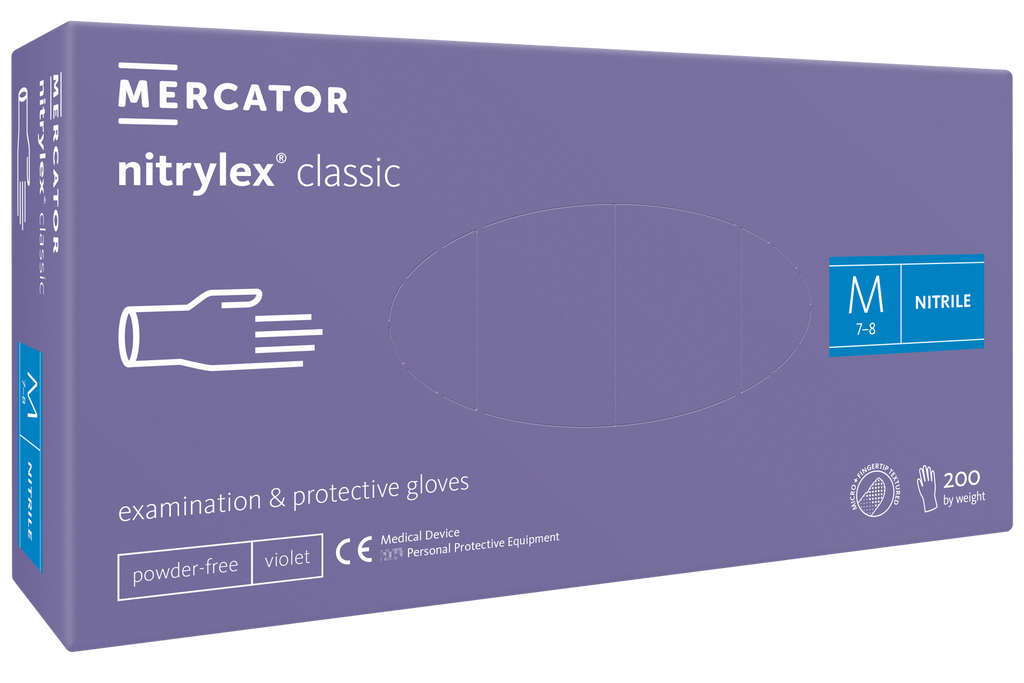 Nitrylex Classic Violet – nitrilo, be miltelių, nesterilūs diagnostikos ir apsauginės pirštinės purpurinės spalvos. Jos turi mikrotekstūruotą paviršių su papildoma tekstūra pirštų galiukuose, užtikrinančią geresnį sukibimą. Chloruotas vidinis paviršius palengvina užsidėjimą, o burbuliuota rankogalis padidina pirštinių patvarumą.