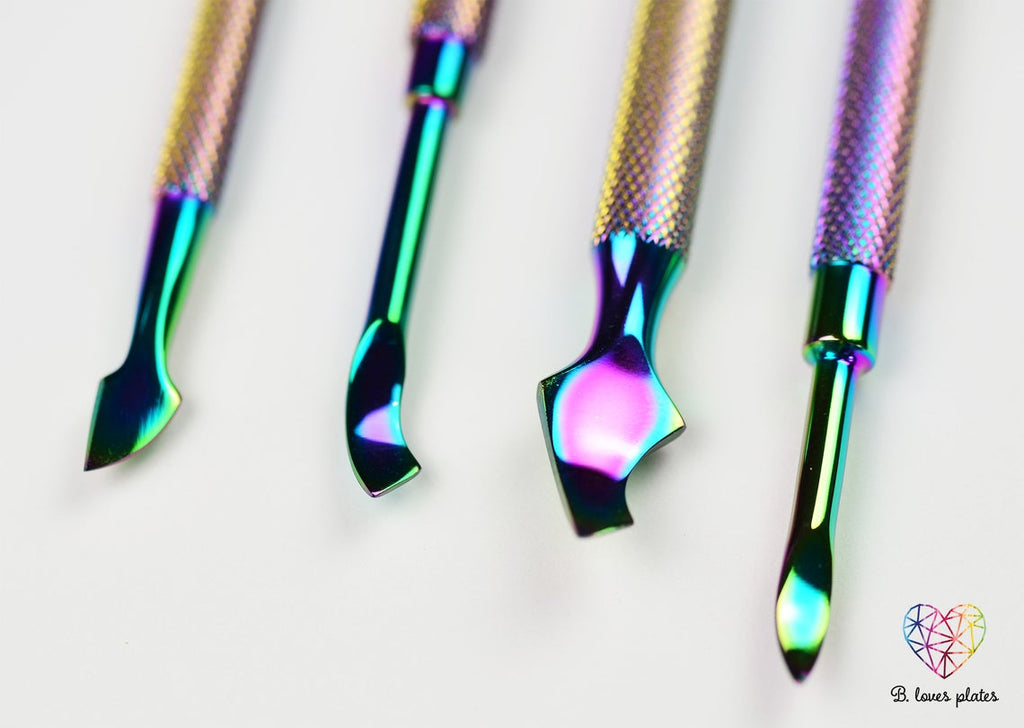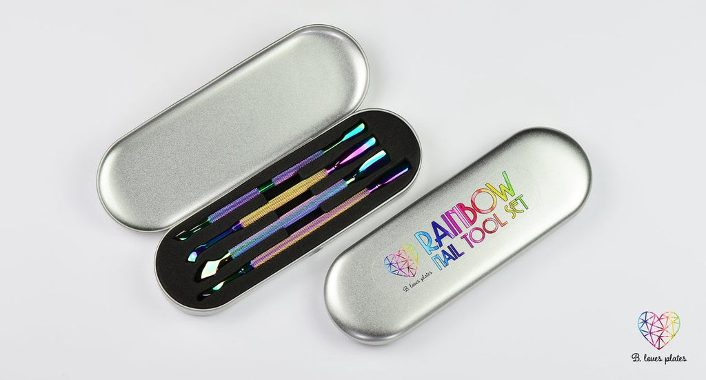 Vaivorykštės nagų įrankių rinkinys nagų instrumentų komplekte yra 4 skirtingi įrankiai!