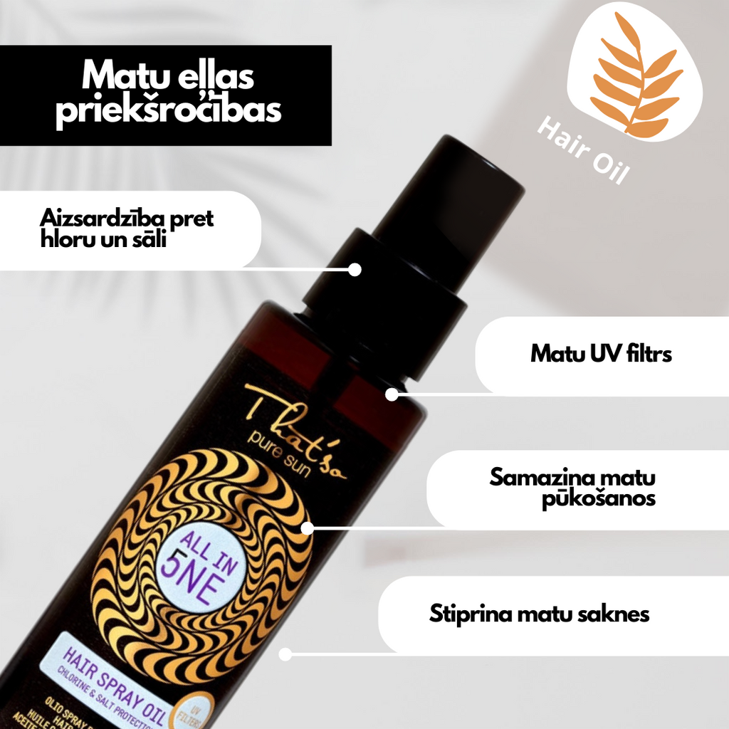 Visapvienojošs plaukstošu matu saules UV aizsargājošs sausais eļļas līdzeklis – Universāla plaukstošu matu aizsardzība pret sauli.