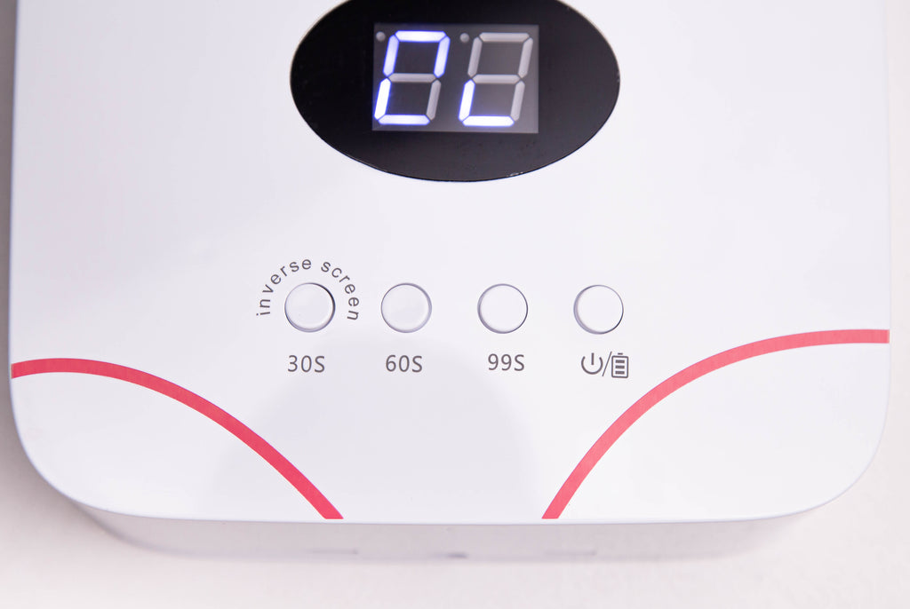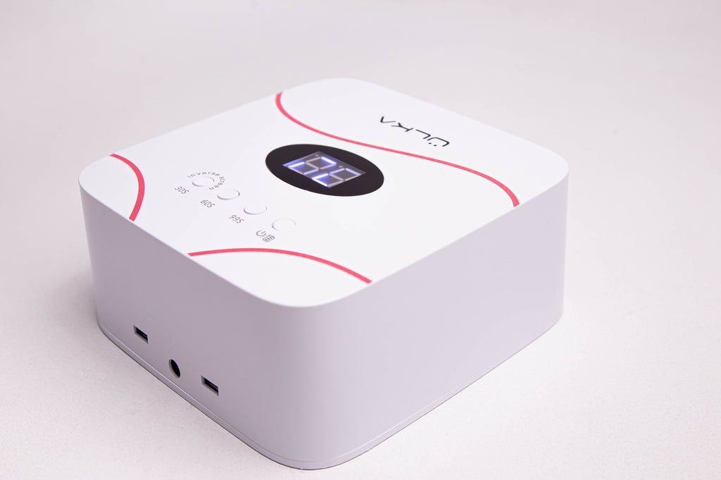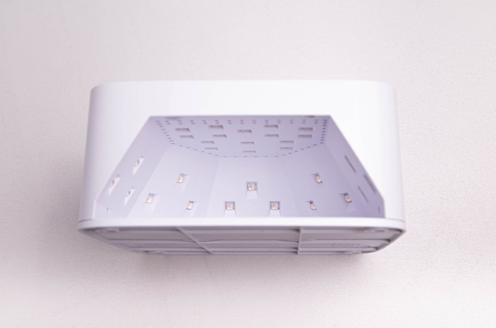 Dvigubos šviesos technologija: dėka 30 LED šviesos diodų, lempa skleidžia platesnį UV spektro diapazoną nei tradicinės LED lempos, užtikrindama pilną įvairių gelių sukietėjimą.