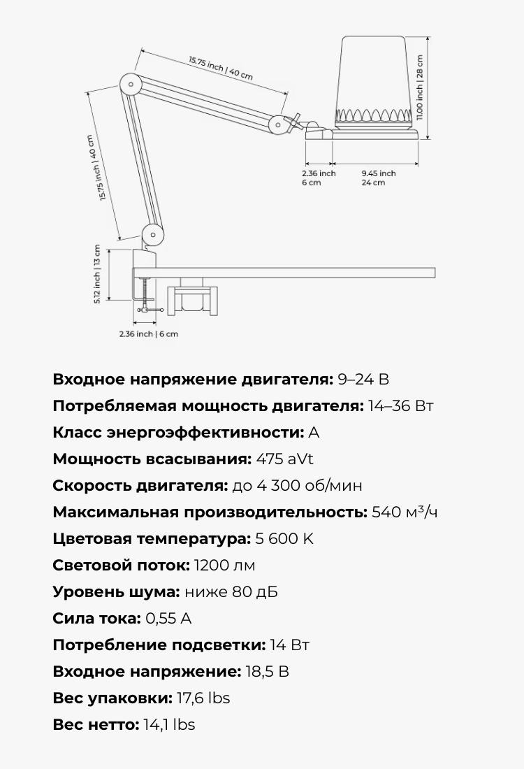 Пылесборник 4BLANC Alize с креплением на стол и светодиодной подсветкой