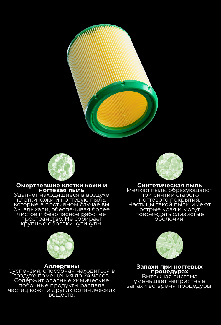 Обеспечьте оптимальное качество воздуха, регулярно заменяя фильтр — он разработан для эффективного улавливания мельчайших частиц пыли.