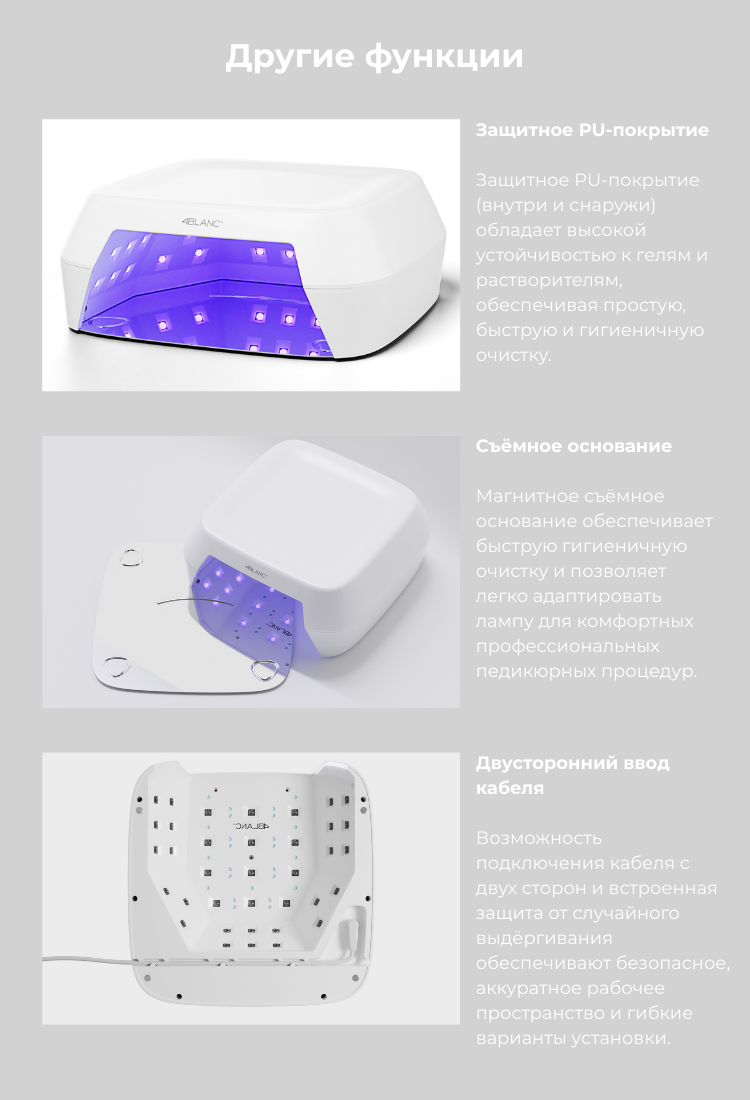 ✔ 36 стратегически расположенных LED-диодов для равномерного покрытия всех пальцев рук и ног