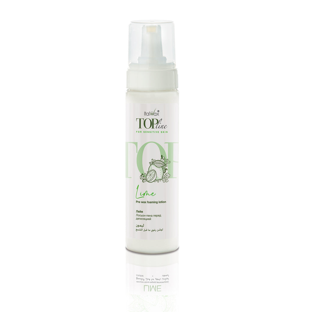 Italwax Top Line Lime Pre-Wax Foaming Lotion предназначен для очищения кожи и подготовки её к депиляции. Этот шаг необходим для повышения эффективности как горячего, так и мягкого воска. Формула на основе алкоголя обезжиривает кожу и сохраняет её сухой, улучшая сцепление воска с волосами. Очень мягкий для кожи, быстро удаляет загрязнения и косметику. Его можно использовать как для больших участков тела, таких как руки и ноги, так и для маленьких деликатных зон, таких как лицо, линия бикини и подмышки.