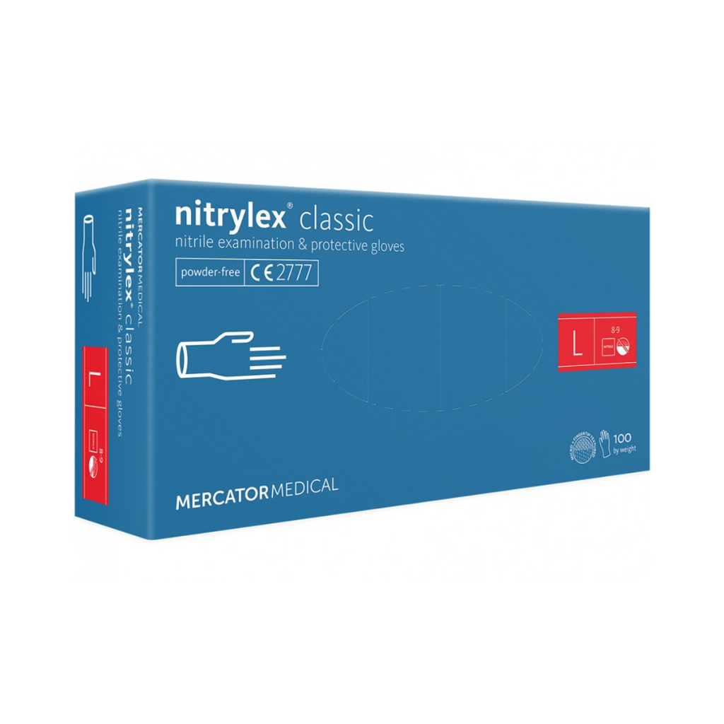 Nitrylex Classic Blue – это нитриловые, неопудренные, нестерильные диагностические и защитные перчатки. Они имеют текстурированные кончики пальцев, обеспечивающие лучшее сцепление, и хлорированную внутреннюю поверхность, что облегчает надевание. Манжета с бортиком повышает прочность и помогает предотвратить стекание жидкости.