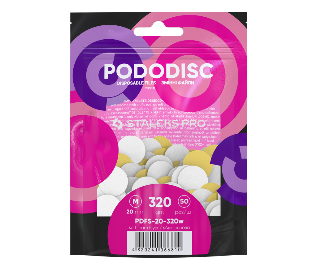 STALEKS Сменные файлы на мягкой пене для педикюрного диска M 320 grit, белый (50 шт.)[PDFS-20-320W]