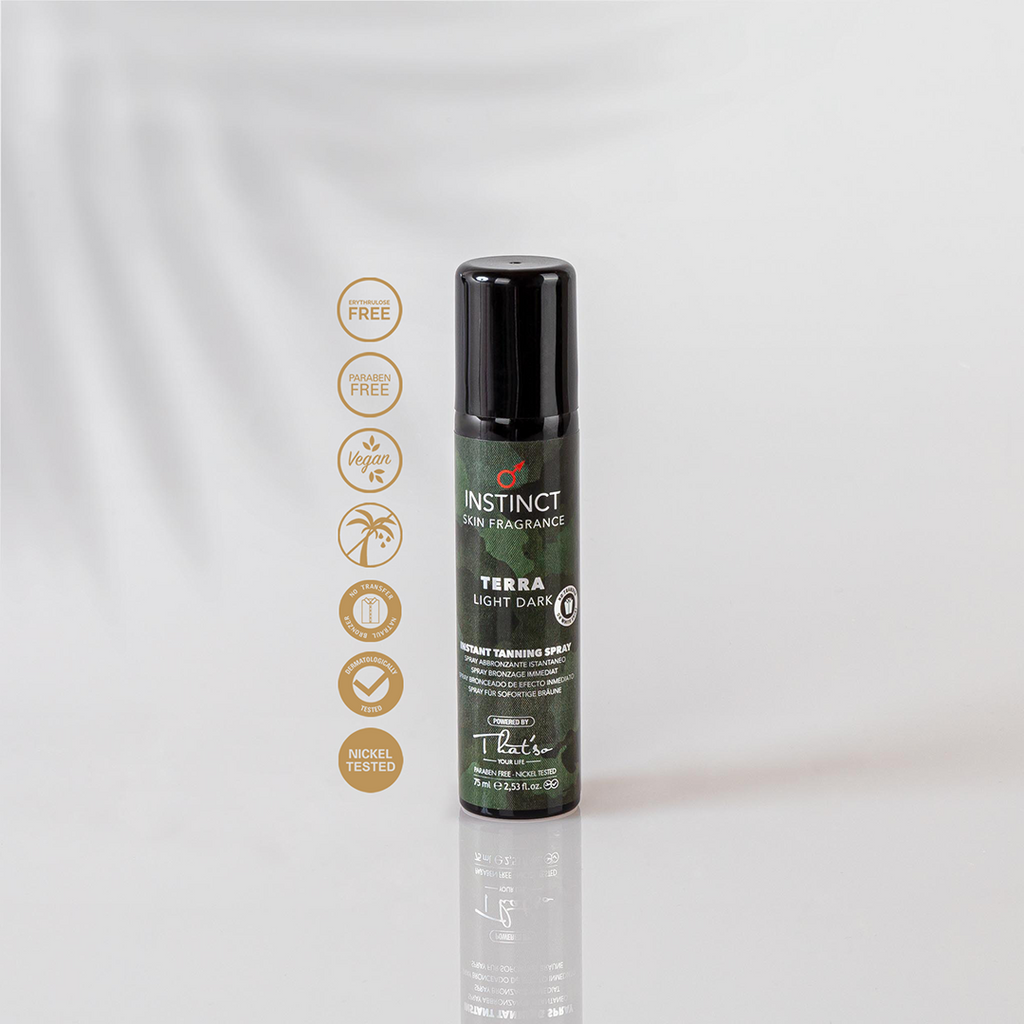 Спрей Terra Extra Dark содержит небольшое количество DHA для легкого загара. Благодаря прозрачности вы можете точно видеть, куда наносите средство, и вы точно не испачкаете одежду. Наш Terra Spray - Extra Dark также имеет приятный аромат. Лучший способ подготовиться за один раз. Этот продукт быстрый и простой в использовании, подойдет каждому мужчине!